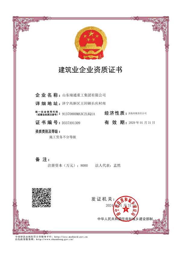山東瑞通重工集團有限公司,位于文化底蘊豐厚的孔孟之鄉的山東濟寧國家高新技術開發區,公司成立于2015年,占地面積50000平方米,從業人員300余名,是一家專注于鋼結構建筑工程的一體化解決方案服務商,公司近年來榮獲多項鋼結構工程總承包資質,專業承包資質,國家高新技術企業,省市級信用企業,鋼結構工程金獎及多項鋼結構制造施工專利證書...